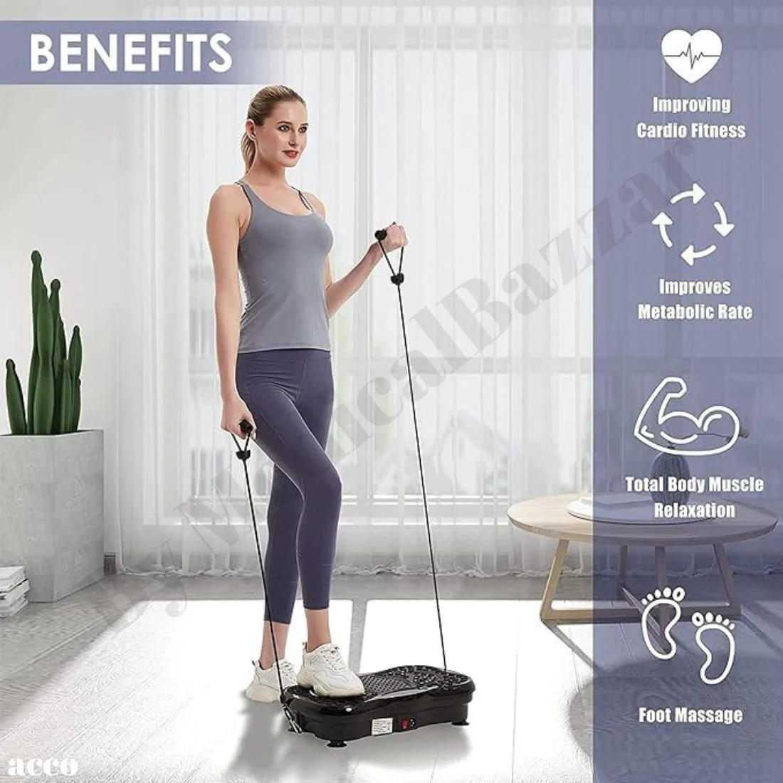 - Helps in muscle toning, calorie-burning and vibration massaging of your whole body